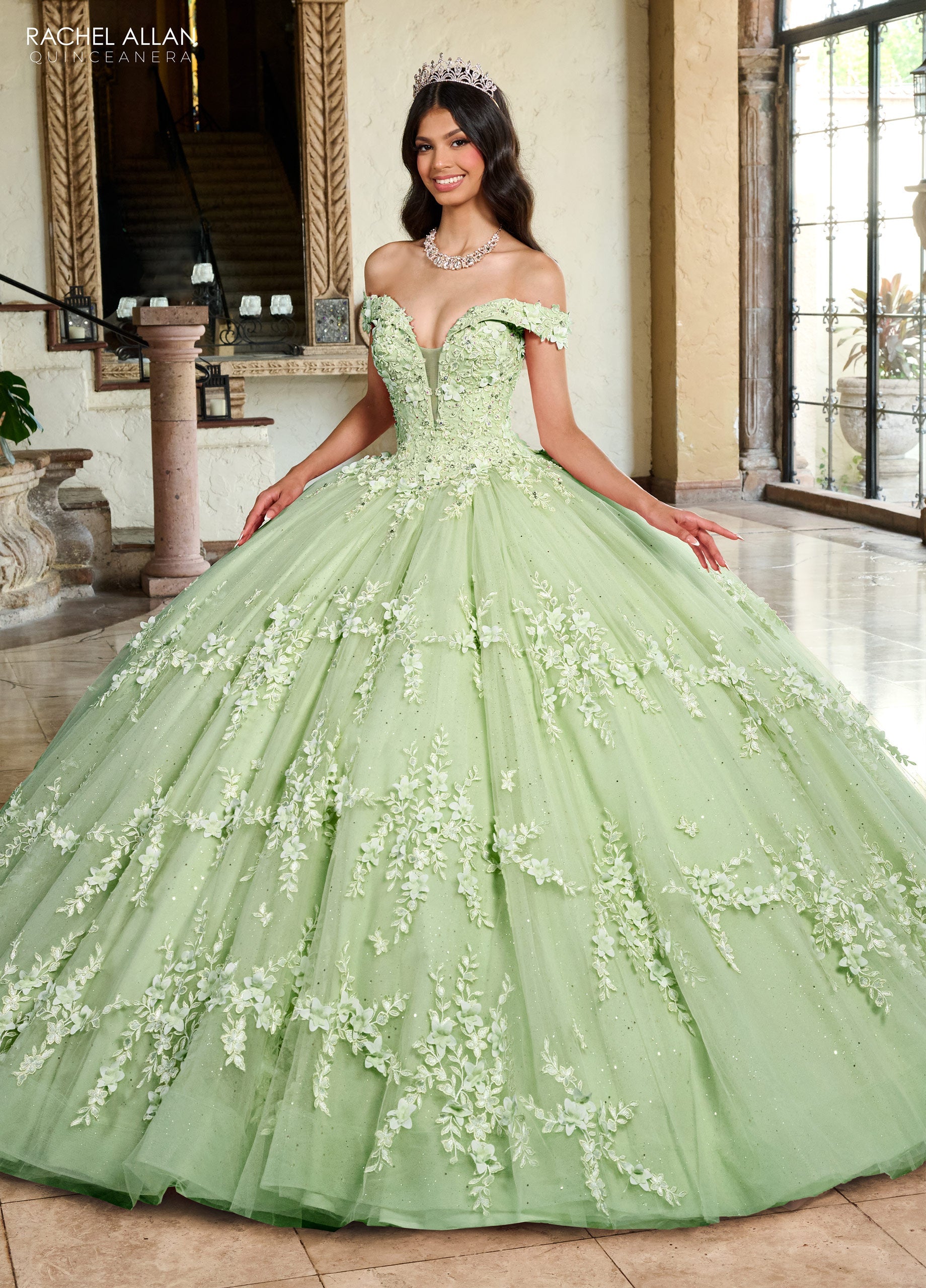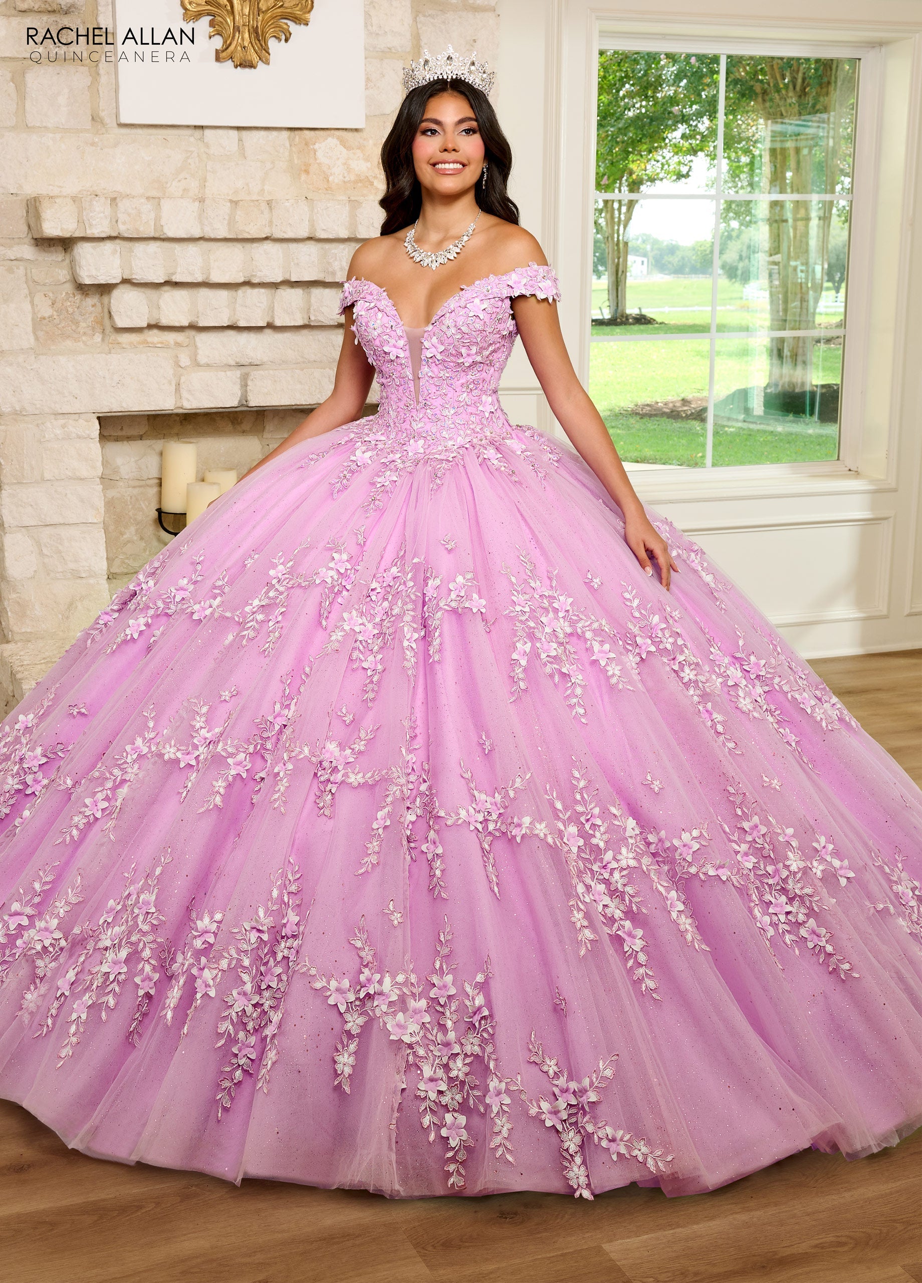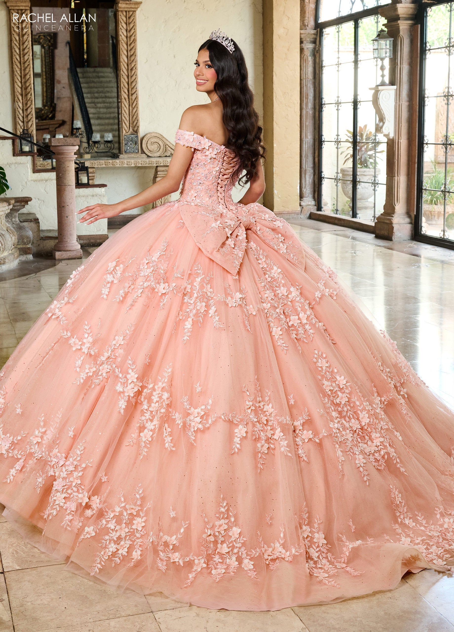 Look no further than the glitter tulle Quinceanera gown, perfect for your big day! This dress is designed with intricate details that show off your unique personality and style. From the delicate 3D flowers that capture the sparkle in the day, to the exquisite applique and beading that adorns the top of the dress, this gown is sure to make a statement. Let's not forget the off-the-shoulder neckline and back bow detail that complete this look with a dramatic finish.