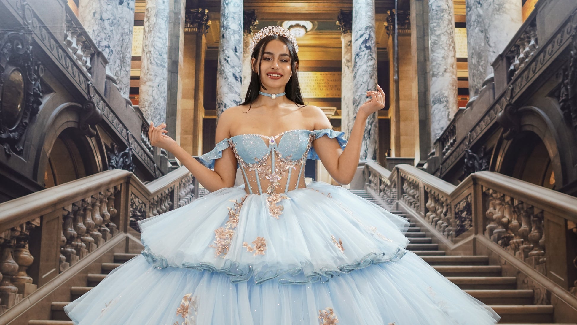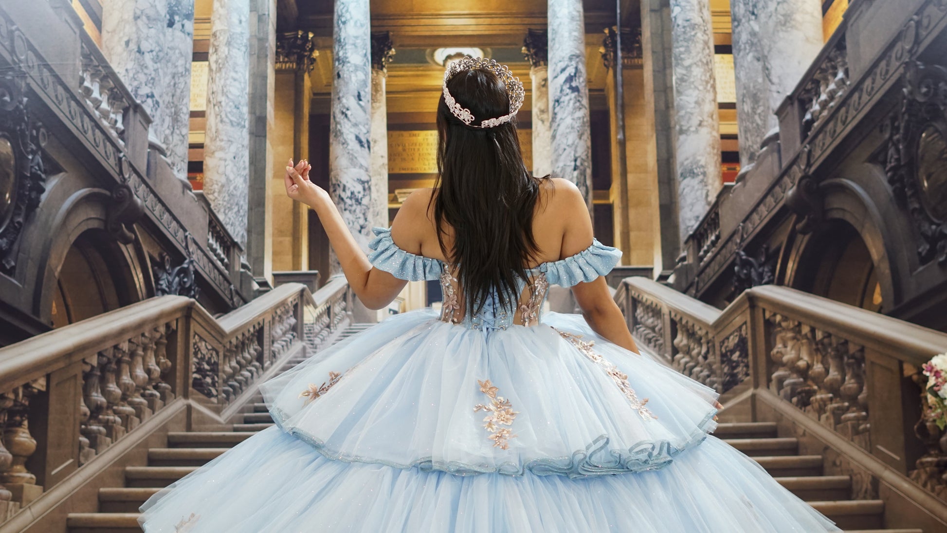 Imagine the sway of this beautiful skirt that shines with those subtle splendid details. Now, take a deep breath and step through the door into this incredible adventure. It's almost the morning of the first day when love arrives, the most amazing friends, the most longed-for dances, and where paths begin to cross with beings who will become the dearest. The first day of your DESTINY. Celebrate your quinceañera with style and excitement. Find the best dresses, accessories, and tips for your quinceañera party he