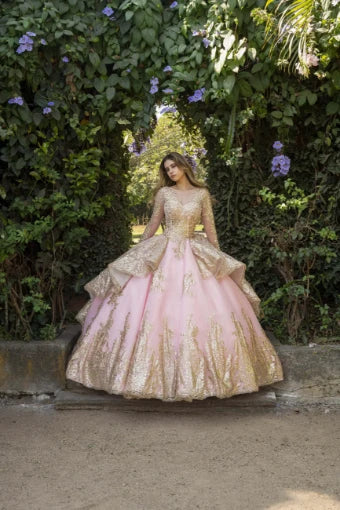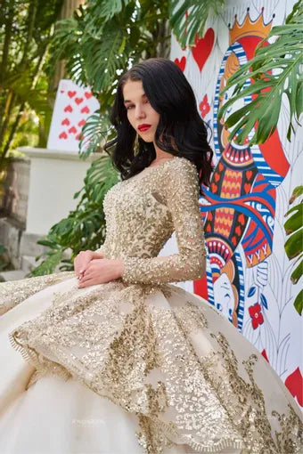 Get ready to sparkle all night in the Ragazza DV56-556! This stunning ball gown shines with glitter appliqués on an illusion sweetheart bodice, while sheer long sleeves and a playful keyhole back add a flirty touch. The flowing A-line skirt with a sweep train lets you twirl with ease, and the lace-up corset back ensures a perfect fit. Perfect for dancing the night away in style!